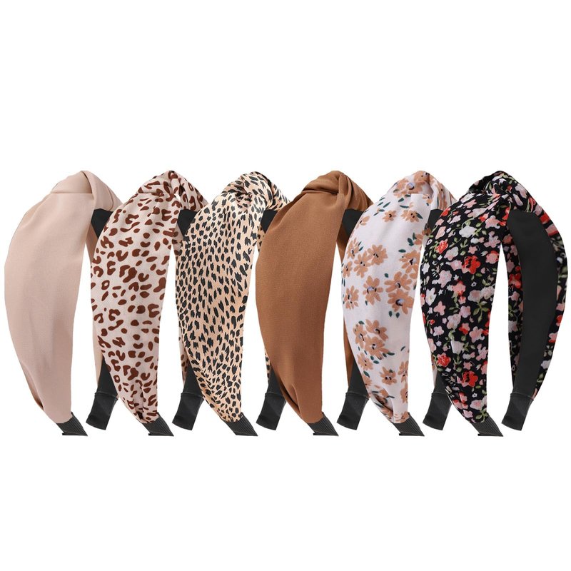 - Variety Pack of Knotted Headbands: Elevate your hair game with the 6PCS Knotted Headbands set, featuring a variety of stylish designs. This assortment includes 2 solid-colored, 2 animal print, and 2 floral knotted headbands, ensuring versatility for any occasion.