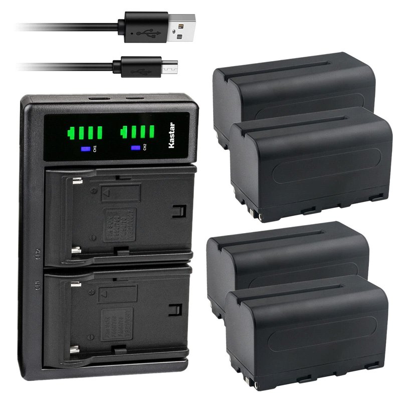 Kastar 4-Pack NP-F750 / NP-F770 Battery and LTD2 USB Charger Compatible with FEELWORLD LUT6 6", LUT6S 6 INCH, LUT7 7 INCH, LUT7S SDI 7 INCH 2200NIT Ultra Bright Touchscreen DSLR Camera Field Monitor