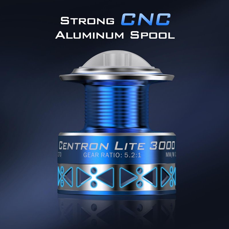 - Brilliant Appearance Design - Centron's attractive, brilliant finish and its high strength two color anodized aluminum spool, with a power launch lip for farther casting, holds more line than other spinning reels in same-size models.
