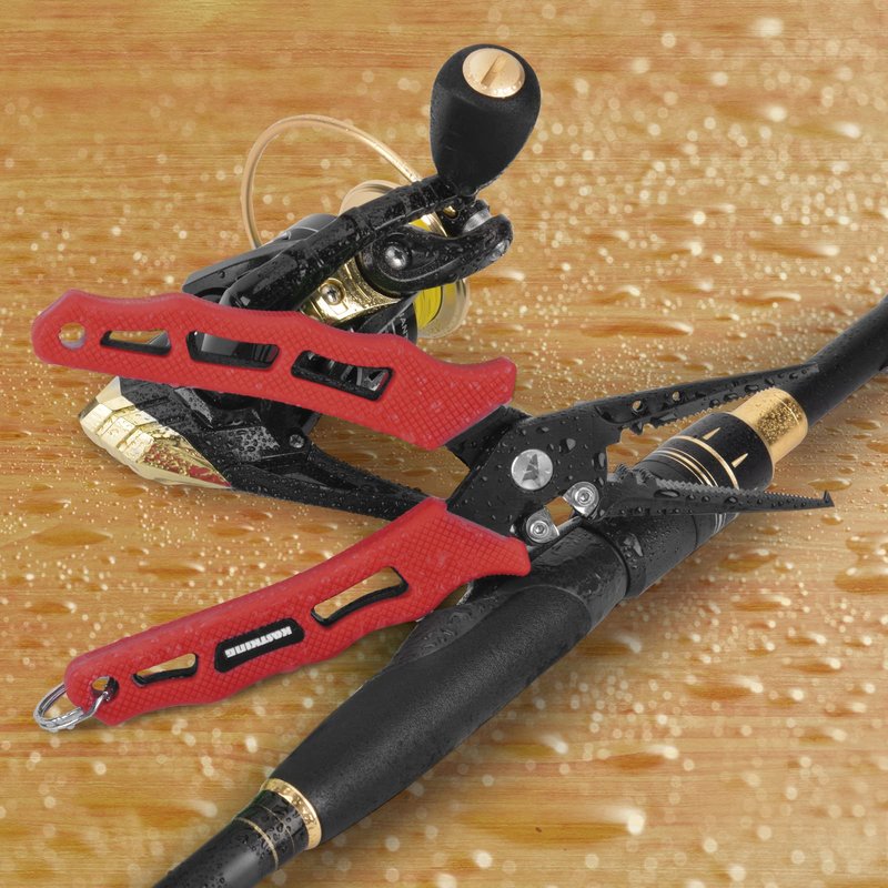- Rubber Handle – The ergonomic textured rubber handle provides comfort and control. A thin grip profile and the spring-loaded jaws allow for easy one hand use without worrying about the fishing pliers slipping out of your hands.