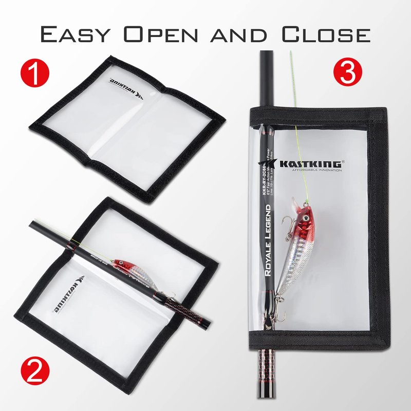 - Easy Open and Close – The KastKing MadBite Lure Wraps easily cover lures and hooks of most sizes to keep them safe and organized. Easy open and close hook and loop construction allows easy access to your gear to get you fishing quickly. Great way to protect and store your rods in lockers or on your boat to eliminate tangles.