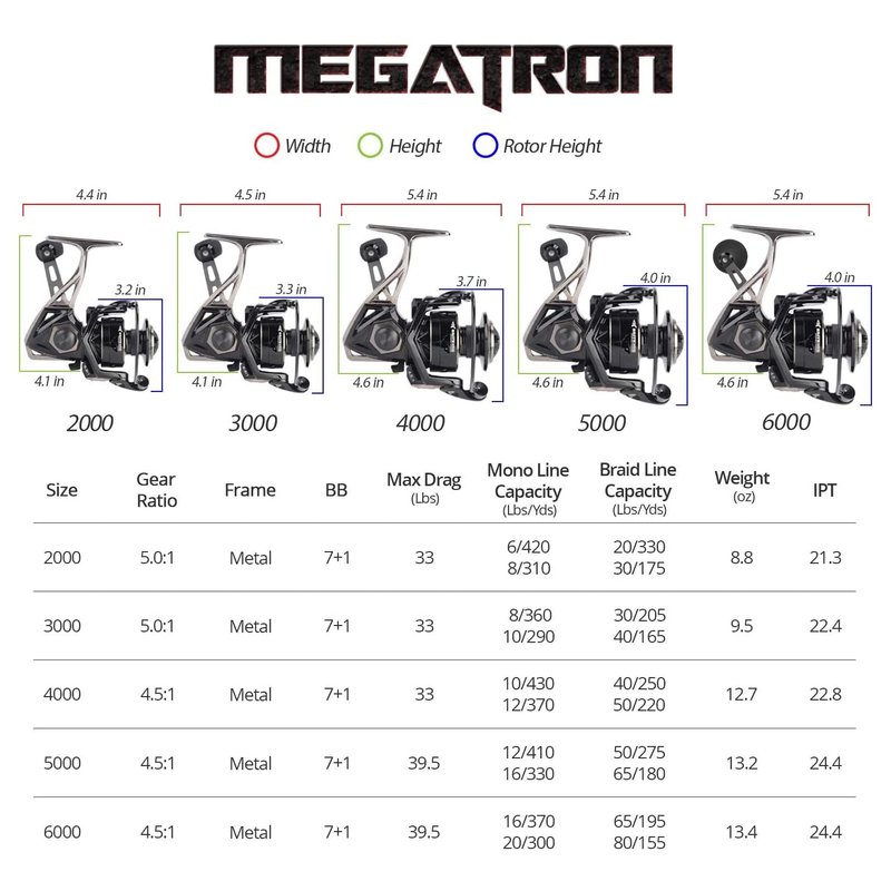 - MOST POWERFUL TRANSFORMER IN FISHING – KastKing MegaTron transforms the industry with the roll out of another great freshwater and saltwater fishing reel. The MegaTron spinning reel brings you a unique, geometrical, bionic engineering design. A spinning reel of this rugged build and unique optics deserves a special place in your fishing tackle arsenal. Its precise geometric forms offer a distinct autobot look that set it apart from all others and helps reduce weight while maintaining strength.
