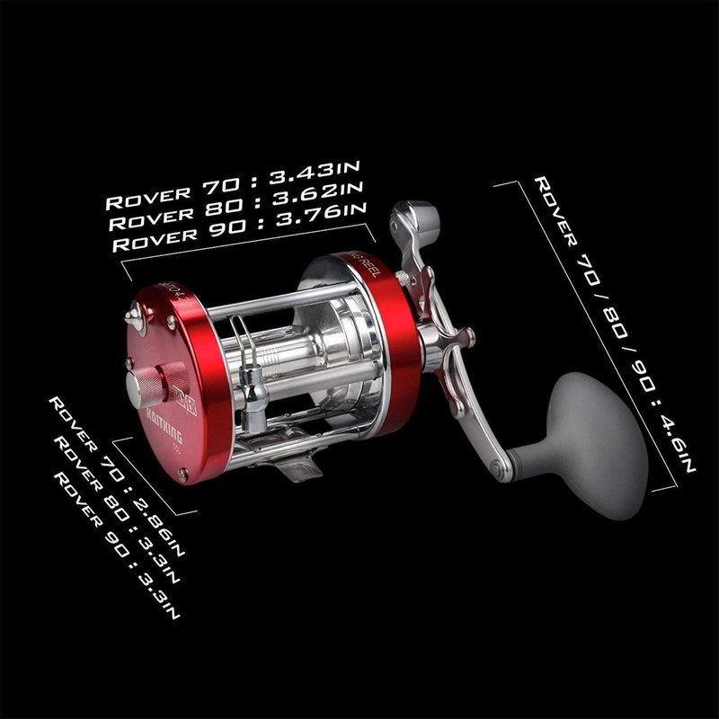 - Versatile - KastKing Rover baitcasting fishing reel is a conventional reel for trolling, bottom fishing, and other techniques used in freshwater and saltwater (Size 40 – 60 with 2-pin centrifugal brake that is good for casting). The oversized nonslip EVA grips, line out clicker alarm, easy access thumb bar spool release (40-60 sizes) and the classic look are everything you would expect of a round baitcasting fishing reel.