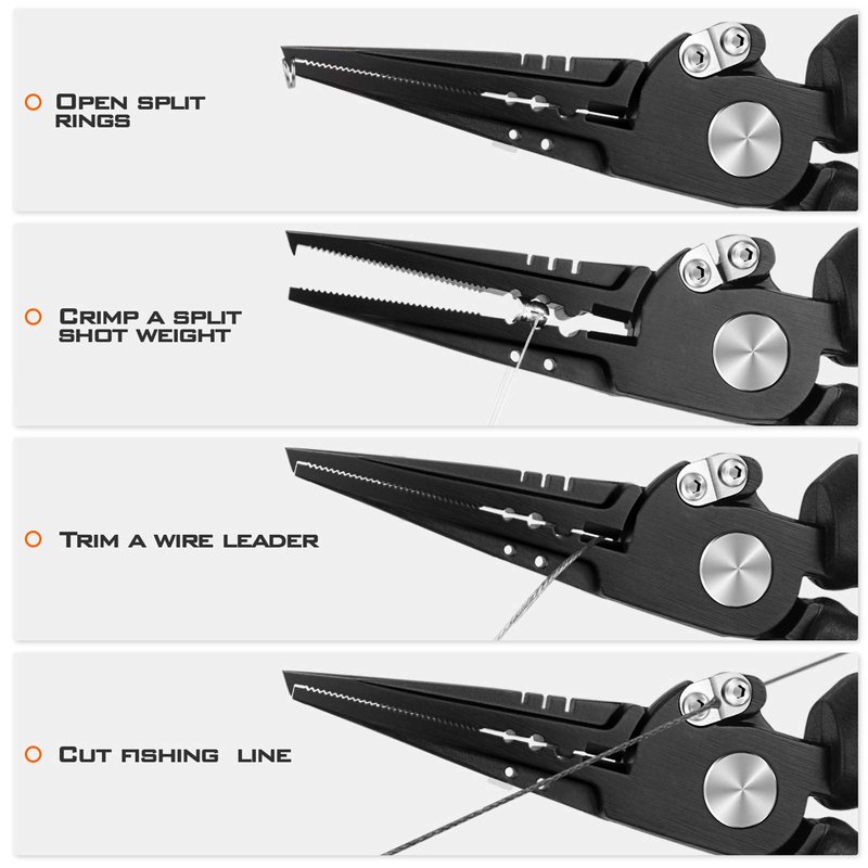 - Key Features – Highly Corrosion Resistant Polymer Coated 420 Stainless Steel 7.5” Fishing Pliers And Line Cutters - Tungsten Carbide Cutters Cut Through Mono, Fluorocarbon And Braid Fishing Line With Ease – Non-Slip Golf Style Superpolymer Grip - Crimp Split Shot Or Build Leaders – Tune Baits – Cinch Knots – Cut Wire - These Kastking Speed Demon Pro Pliers Are Great As Fishing Tools And Are Handy Fishing Accessories To Add To Your Fishing Gear.