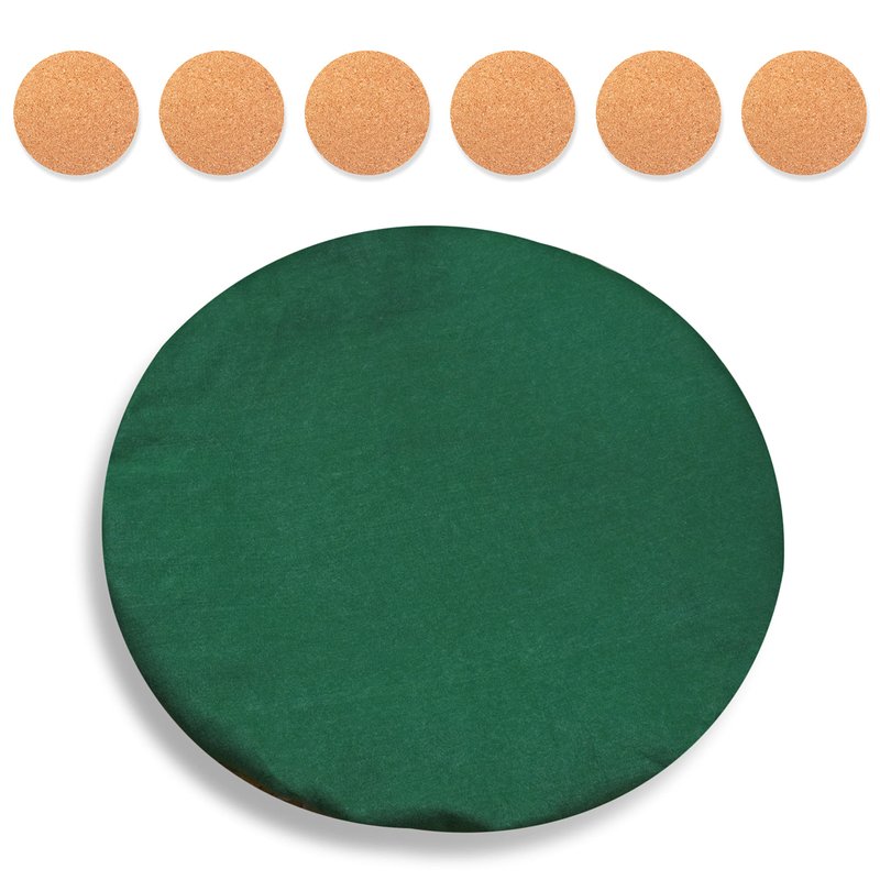 Katai Poker Table Cover 36 to 48 inches - Round Green Felt Casino Style - Game Night Noise Reducing and Slip Prevention - Complete with 6 Cork Drinks Coasters