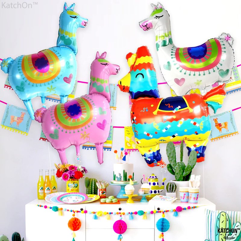 KatchOn, 4Pcs Llama Balloons for Birthday Party - Giant 39 Inch | Llama Birthday Balloons for Llama Birthday Decorations | Alpaca Foil Balloons for Fiesta Party Decorations | Llama Party Decorations