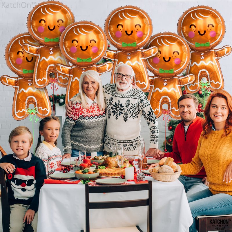KatchOn, Big Merry Christmas Gingerbread Balloons - Pack of 6 | Gingerbread Man Balloon for Christmas Party Decorations | Christmas Foil Balloons for Christmas Decorations | Gingerbread Decorations