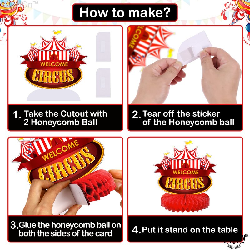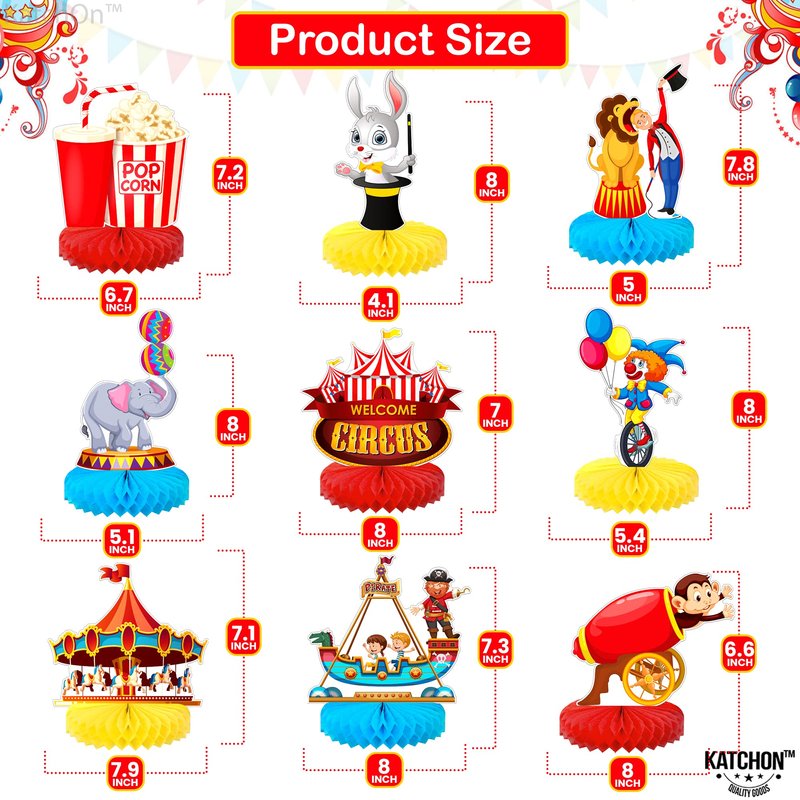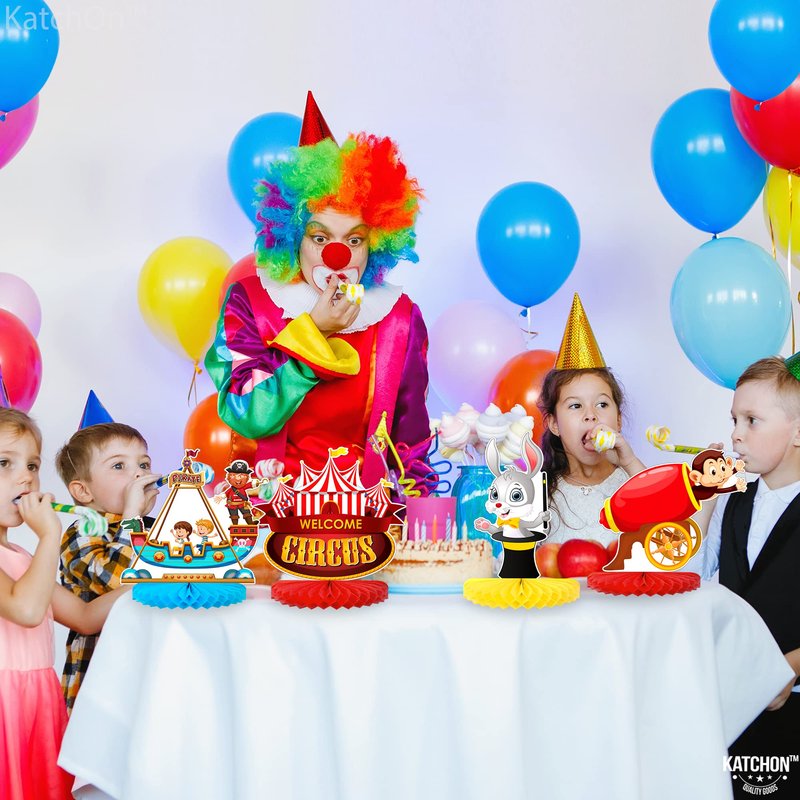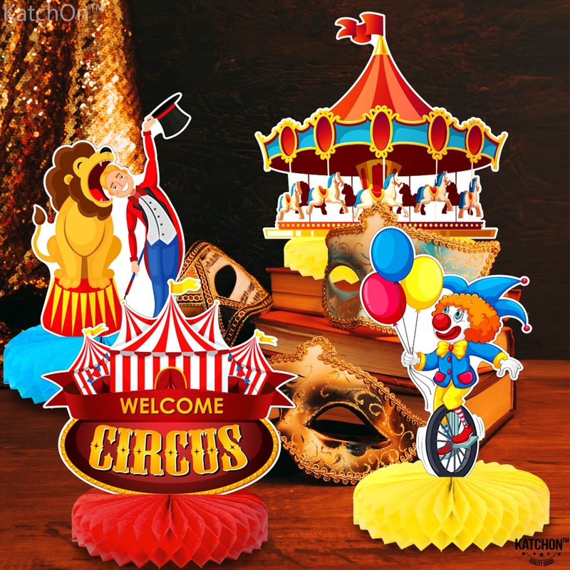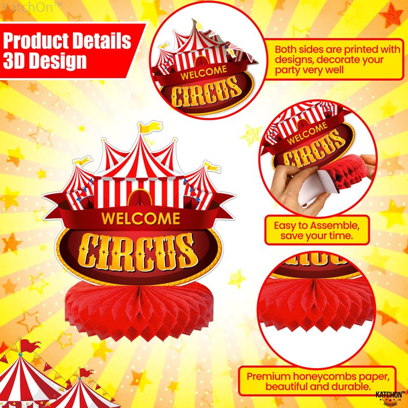 - GET READY TO CLOWN AROUND WITH OUR CARNIVAL HONEYCOMB: Create perfect shots for post with this carnival table decorations Ideal for circus themed party decorations, carnival baby shower decorations, carnival theme party decorations, carnival centerpiece circus table decorations, carnival birthday party supplies, etc. These circus theme party decor will help your guests remember your event for years to come. Simply hand them out to your guests and watch as they delight in the magic of the circus!