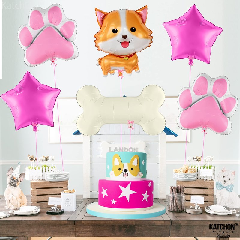 - BIG SIZE - 29 INCH, DOG BONE BALLOON | HELIUM SUPPORTED : Bring fun puppy ballons with helium supported dog bone balloon, mylar dog balloon birthday, dog paw balloons, star balloons! This is perfect to dog party decorations, making it one of great dog party favors or dog party supplies, corgi birthday decorations. The pawty balloons is easy to inflate and sure add excitement to pet's special day. Use it as dog decor to make party to remember, perfect for pink puppy party decorations for girls!