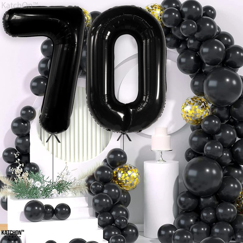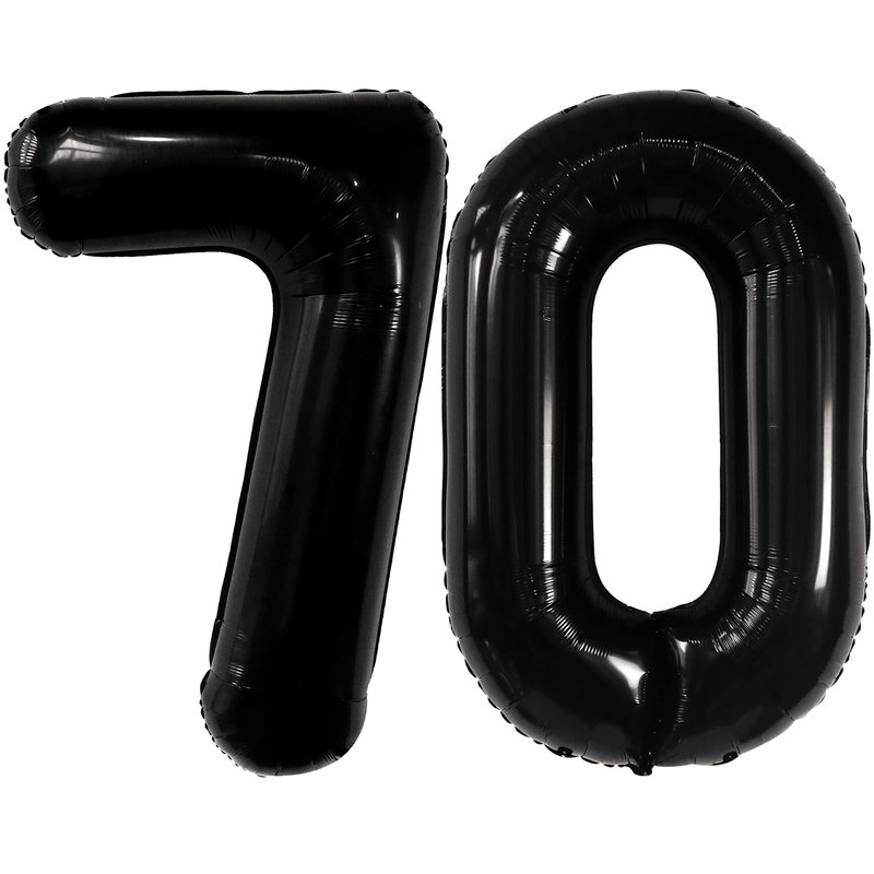 - BIG BEAUTIFUL BALLOONS | PAIR WITH OTHER NUMBERS : These beautiful shiny Black 70 birthday party decorations are perfect for any theme party. Choose from numbers 0 to 9 balloons to make up any age or number for your occasion. Combine this number 70 black balloons with more foil Black number balloons to create double digit age or special date.It can also be combined with a happy 70th birthday banner. Make your party special with 70 balloons numbers for birthday party.