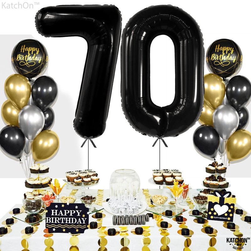 - PICTURE PERFECT BACKDROP OR PHOTO PROP : The Black Number 70 Balloons for Birthdays will be a perfect backdrop for 70th birthday decorations men. The 70 year old balloons can be used as a photo prop for your photoshoot or anniversary and also 70 birthday decorations for men, 70th party decorations, 70 years party or 70 decorations party birthday woman. Light up the event with this Black 70 balloon, 70 birthday balloons for 70th birthday party supplies. order 70 and fabulous decorations now.
