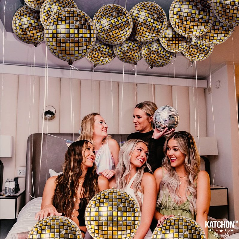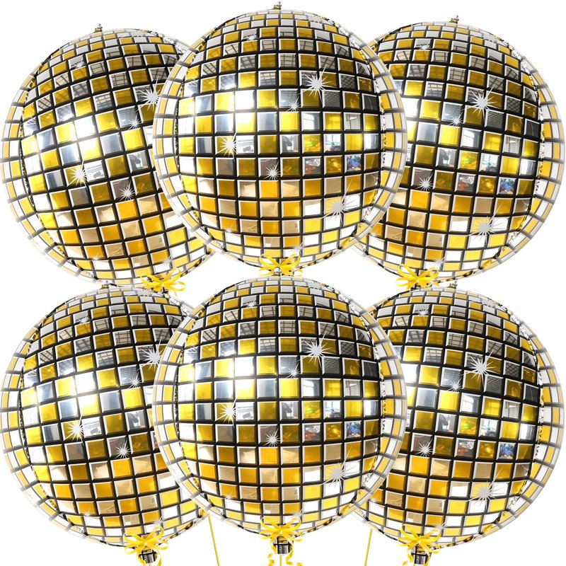 - BIG SIZE : 22 INCH | PACK OF 6 | METALLIC GOLD DISCO BALLOONS : Shake a Leg with this round metallic 4d disco balloons for disco party decorations supplies that exudes a sense of magical experience and youthful energy. A unique big gold disco balloons for 70s disco, senior night decorations that won't go unnoticed. Disco party balloons are not just shiny but also 22 inch, Pack of 6.