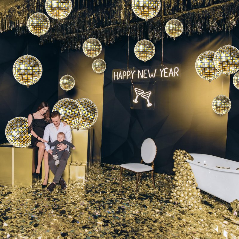 Create a metallic gold disco ball balloons decorations for a beautiful entrance. Metallic Balloons Disco Ball is an eye-catching and stylish design of 4D disco balloons. Make Laser disco balls balloons 90s party decorations Memorable With Laser disco mylar balloons!!!