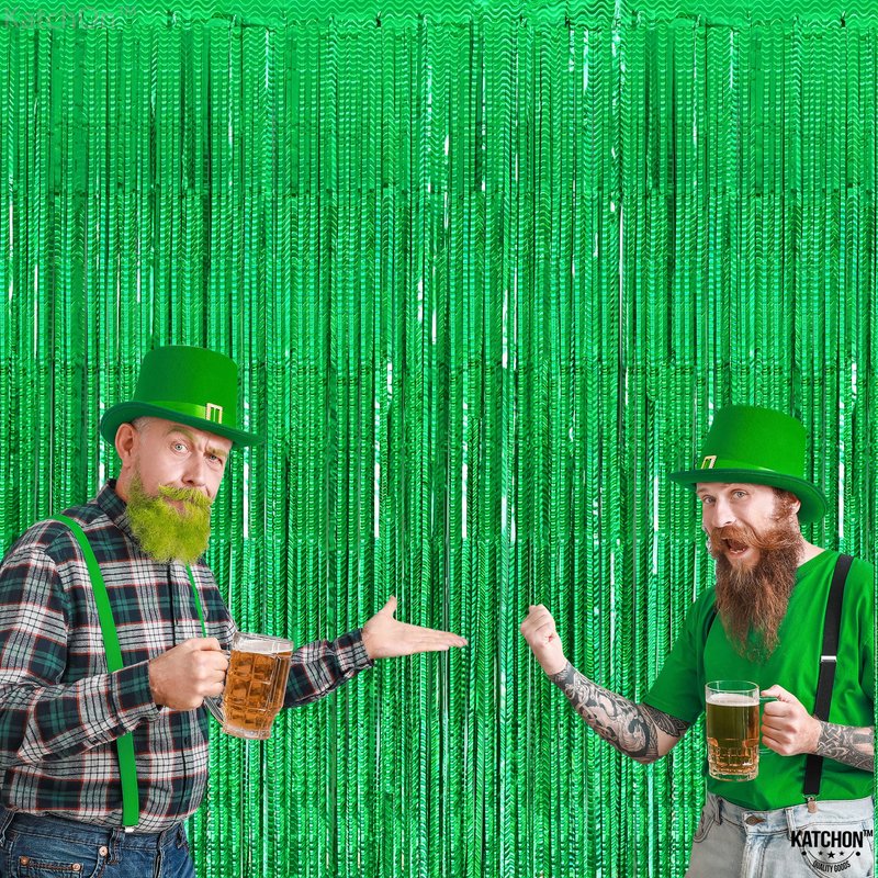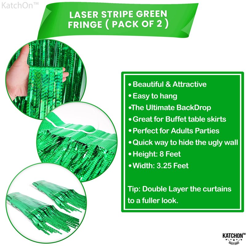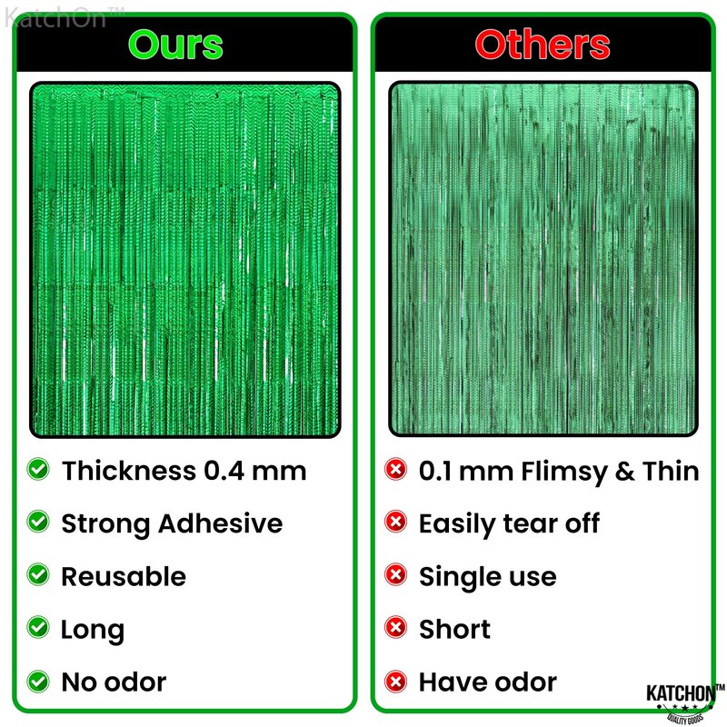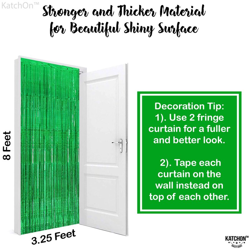 - EASY TO ASSEMBLE | STRONG ADHESIVE | NOT EASY FADE : The katchon iridescent green streamers backdrop, green door fringe come with double-sided adhesive tape, easy to use, just tear off the back of adhesive tape, then paste Green fringe on the top of wall, window, table, door or anywhere you like to light up your jungle birthday party decorations. Hang this green photo backdrop, st patricks day backdrop, jungle decorations or sparkly green decorations for birthday party, green party supplies.