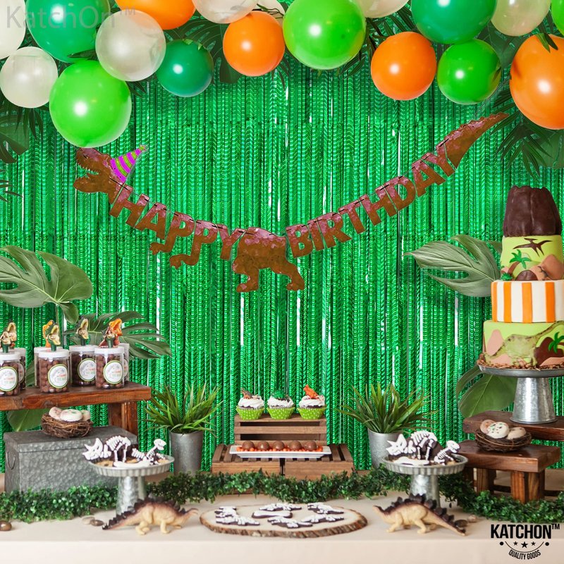 - Shiny green streamers backdrop for dinosaur door cover decoration for girls