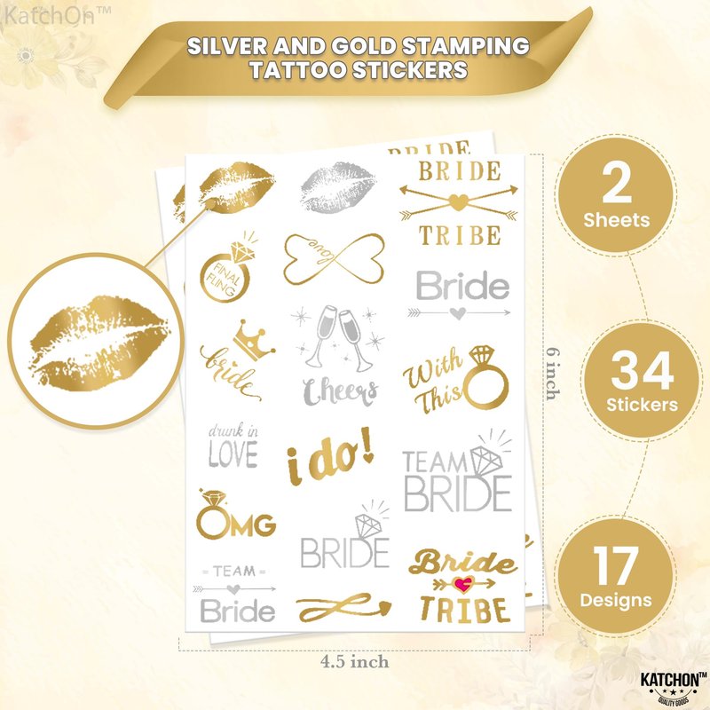 KatchOn, Metallic Bride Tribe Tattoos - 34 Pieces | Gold Bride Tattoos Bachelorette Party Decorations | Bachelorette Party Supplies | Silver, Gold Bachelorette Tattoos for Bridal Shower Decorations