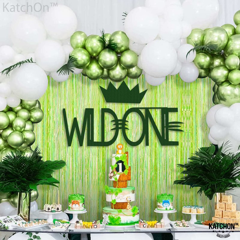 light green tinsel backdrop for Safari party decorations, christmas decorations indoor