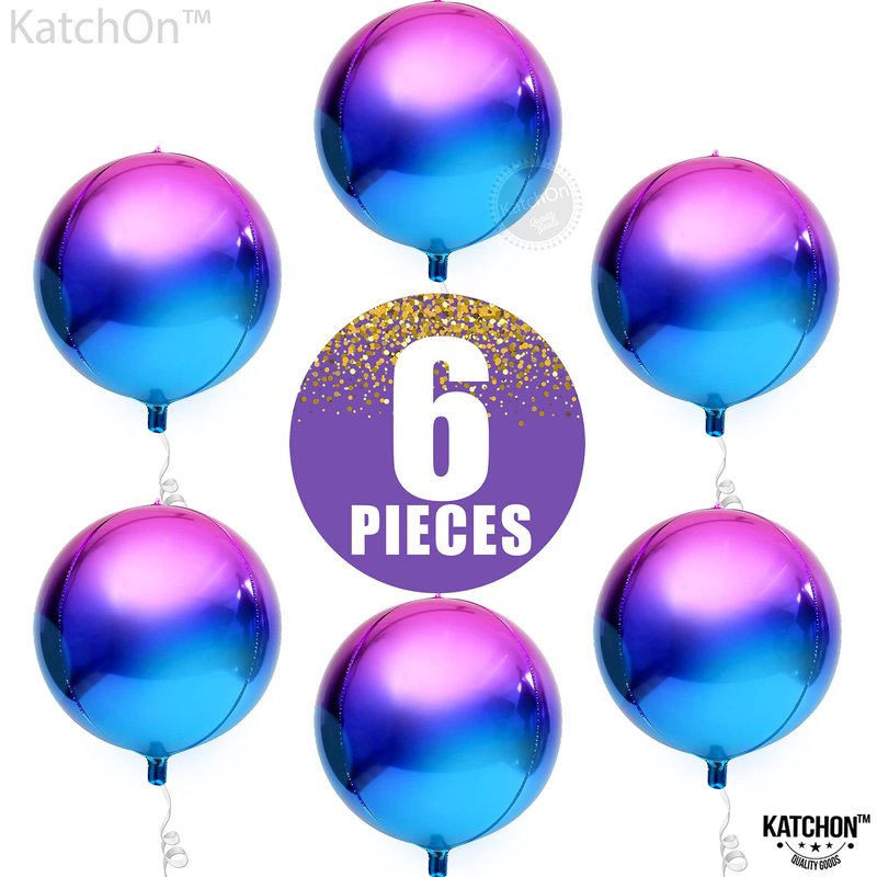 KatchOn, Purple Galaxy Balloons - 22 Inch, Pack of 6 | Iridescent Balloons, Round 4D Metallic Balloons for Galaxy Birthday Party Decorations | Purple and Blue Balloons for Galaxy Party Decorations