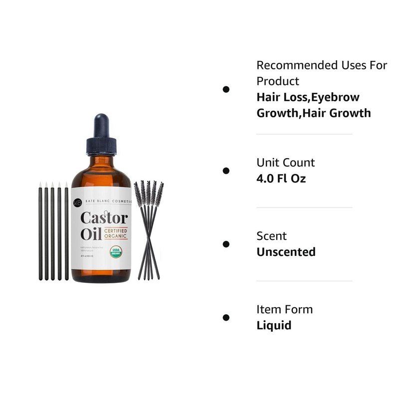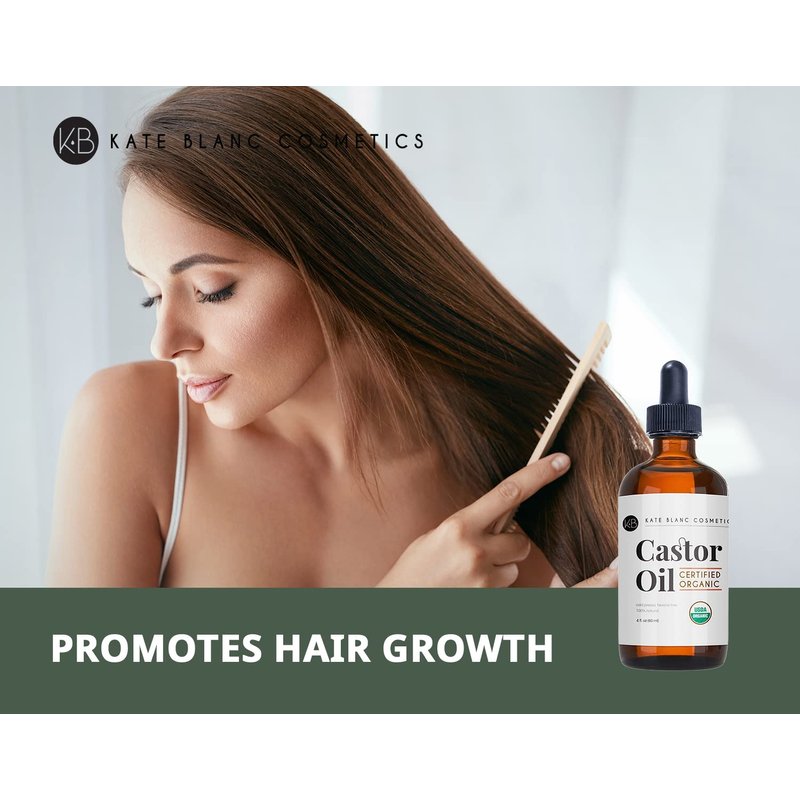 USDA Certified Organic Castor Oil for eyelashes and eyebrows growth. If you’re looking for a natural and organic oil to grow your eyelashes and eyebrows, Kate Blanc Cosmetics organic castor oil is a Godsent. Kate Blanc Cosmetics Castor Oil is organically grown and cold pressed with no added preservatives. Because it’s 100% pure, it easily absorbs into your lashes and brows to boost hair growth.