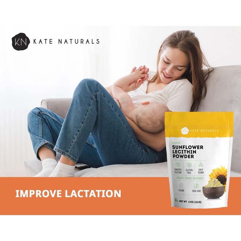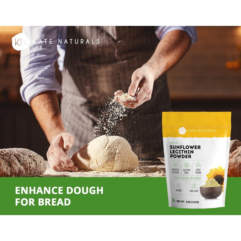 Kate Naturals Sunflower Lecithin Powder for Baking Bread, Gummies, Cooking (4oz) 100% Natural, Gluten Free, Non-GMO Substitute for Lecithin Powder for Liposomal Vitamin C, Lactation Supplement