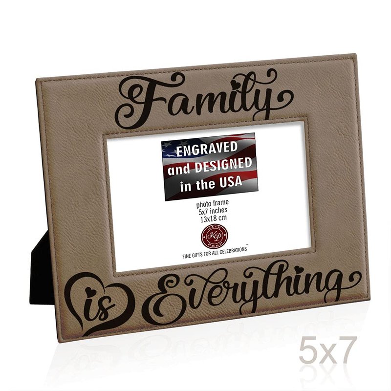 KATE POSH Family is Everything Engraved Leather Picture Frame (5x7-Horizontal)