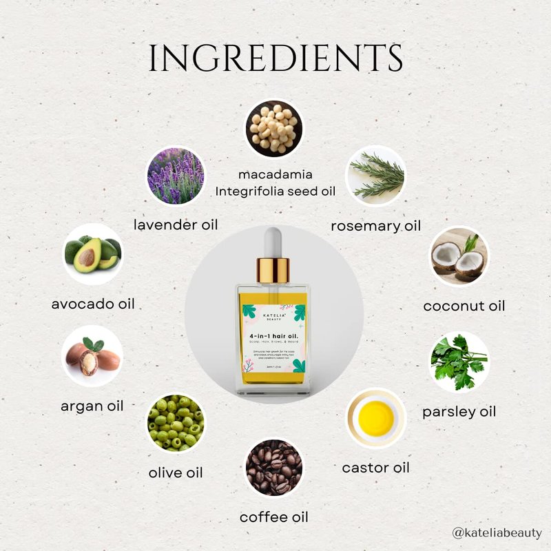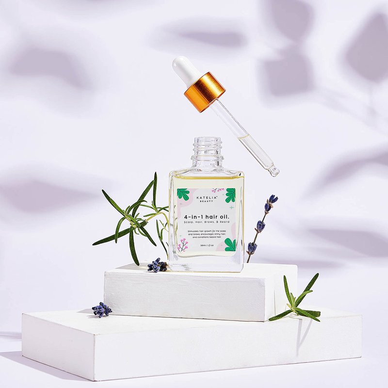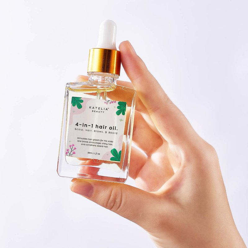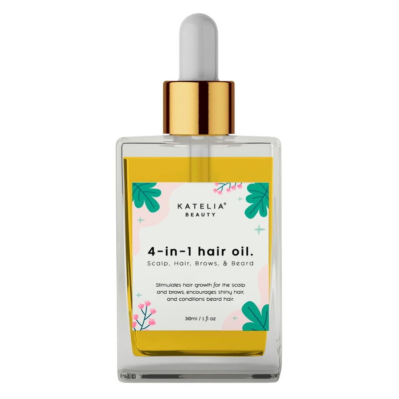 Katelia Beauty 4-in-1 Hair Oil (Scalp, Hair, Brow, & Beard) a Multi-Purpose, All-in-One Hair Growth Treatment for Longer, Stronger, & Healthier Hair, Anti-Hair Loss, Promotes Hair Growth, 30 ml