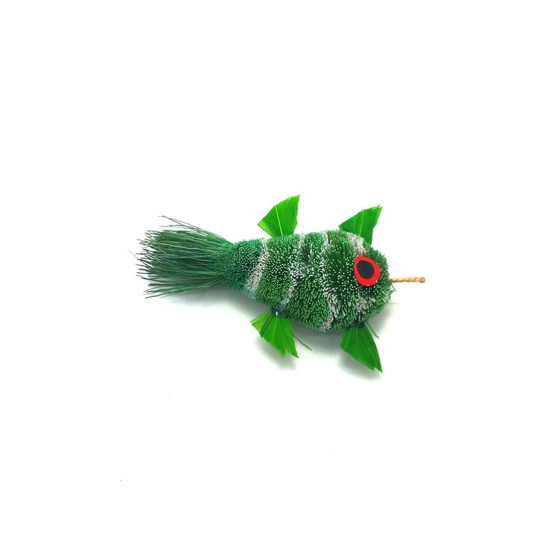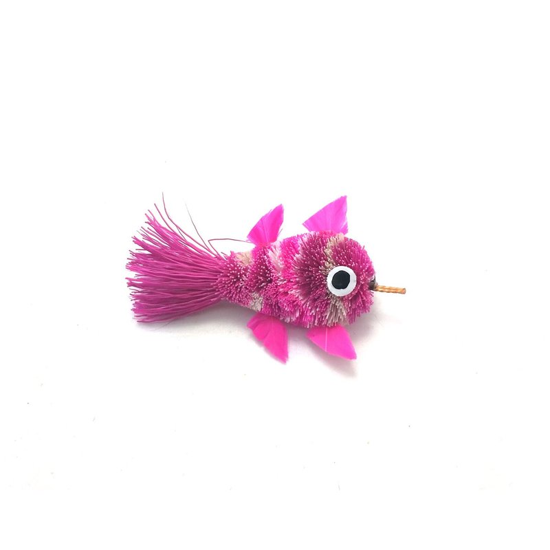 Bright mini clownfish cat toy refills that come with a teaser wand will be your cat's delight. Choose from 3 different sets of clownfish made from deer hair and feathers. The Teaser wand is white fiberglass with a red vinyl grip. 19 inches long with durable 36 inch long fishing line for hours of fun!