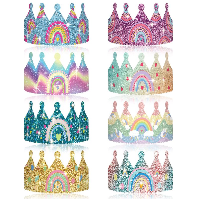 - Attractive Rainbow Designs: these party crowns are designed with colorful rainbows and glittery backgrounds, can be widely applied for kids parties decorations; Make good memories for your children