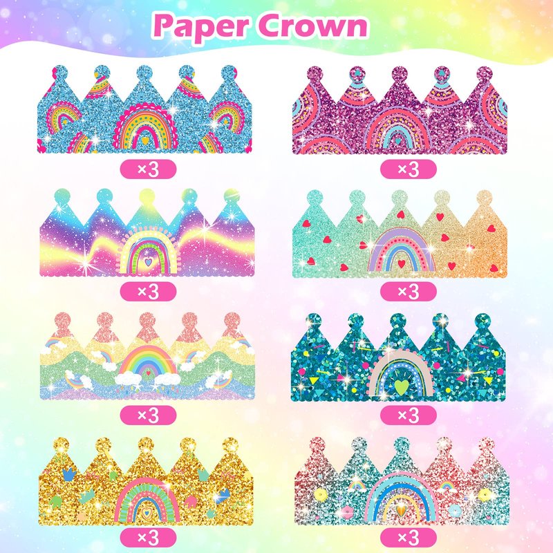 - Abundant for Wearing and Sharing: the package includes 24 pieces crowns in 8 styles, 3 pieces for each style, a nice combination to satisfy your dressing needs at birthday parties