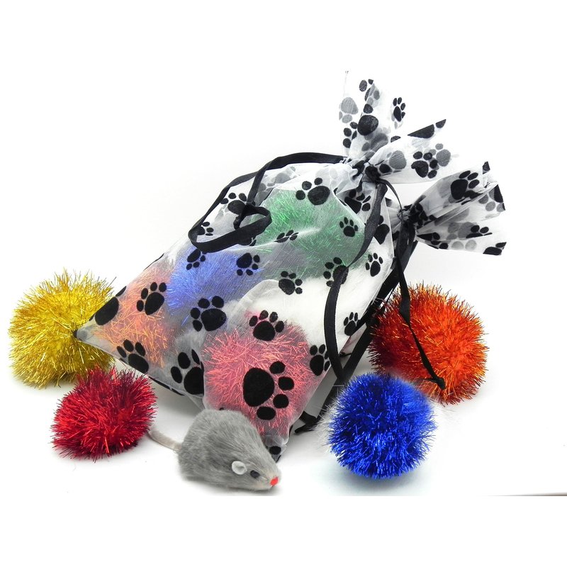 Need an idea for that special cat lover? what about a special gift for your favorite cat? These cute paw print fabric bags are stuffed with our most popular and Best cat toys.
