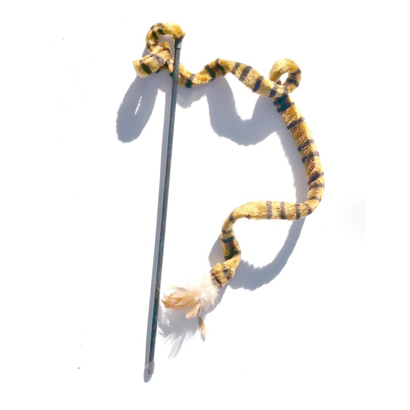 Kats'N Us Cat Teaser Wand Tiger Stripe Print with Feathers Cat Toy Teaser(Brown Stripe)