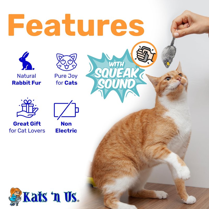 - Kats'N Us Quality: Trust in the quality of Kats'N Us products. These rabbit fur mouse cat toys are designed to provide endless fun for your furry companion and are sure to become their new favorites.