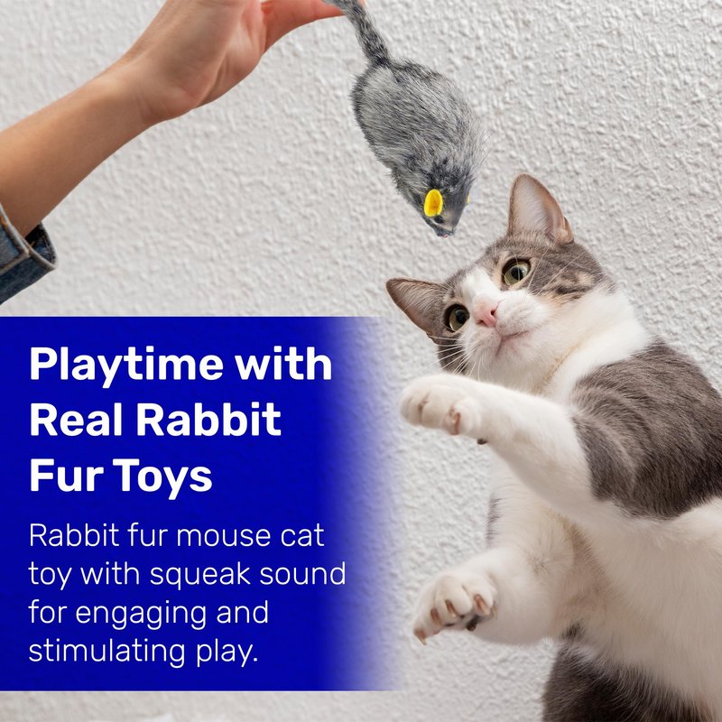 - Entertaining Exercise: Enhance your cat's playtime with our Real Rabbit Fur mice, ensuring hours of engagement. The fur's softness and texture mimic real prey, satisfying your cat's natural instincts. so they can chase, toss and carry these furry guys around.
