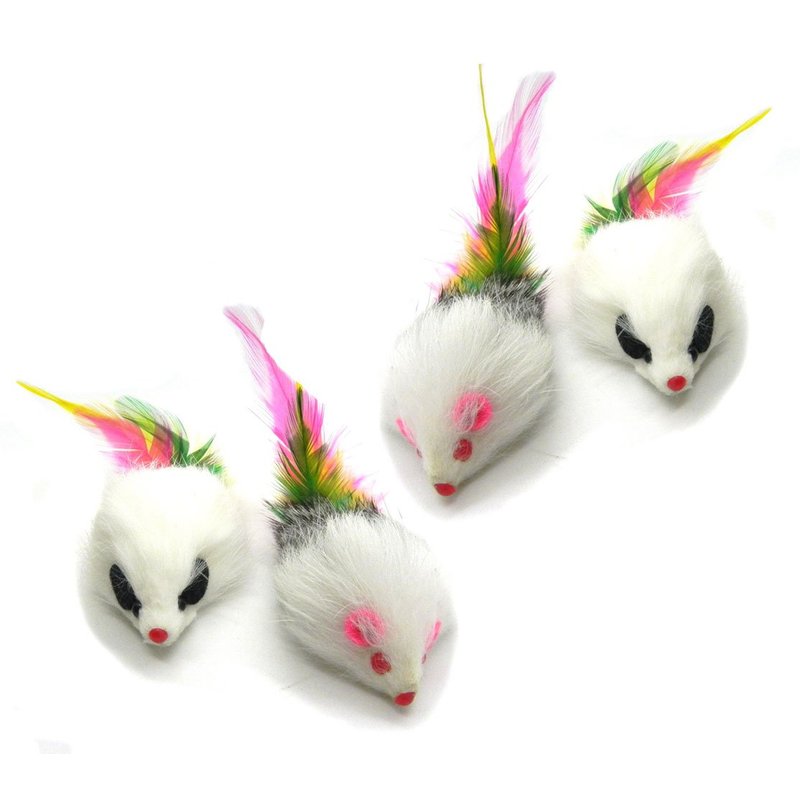 Kats'N Us Real Rabbit Fur Long Hair Feather Tail Mouse Cat Toy - 4pk