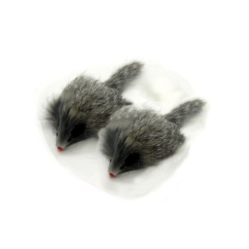 Kats'N Us Real Rabbit Fur Long Hair Mouse Cat Toy - 2pk Gray