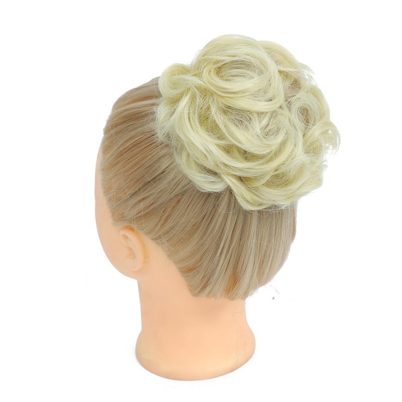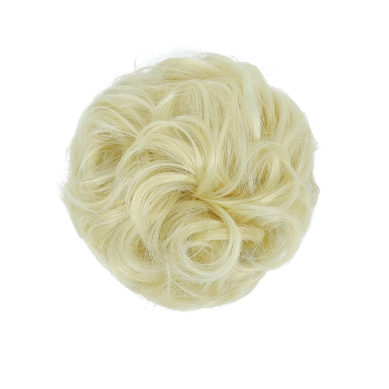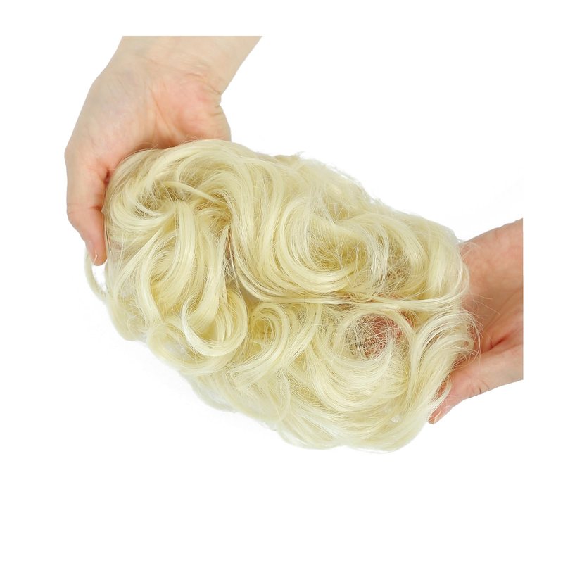 Kavsni Messy Bun Hairpieces Synthetic Hair Extensions Hair Bun Curly Wavy Faux Hair Bun Hair Accessories for Women (Bleach Blonde, Elastic Hair Tie)