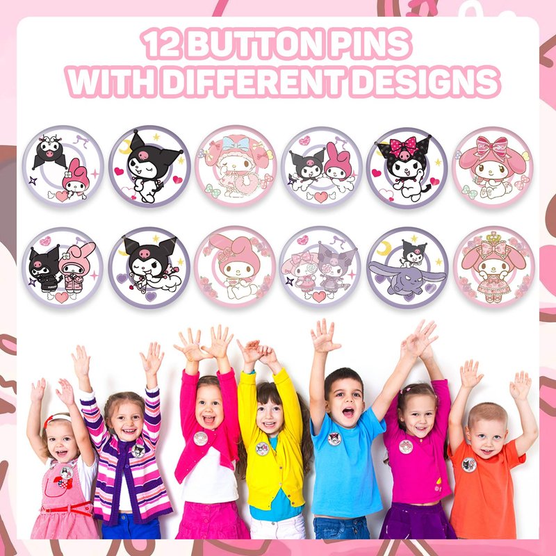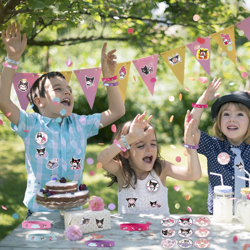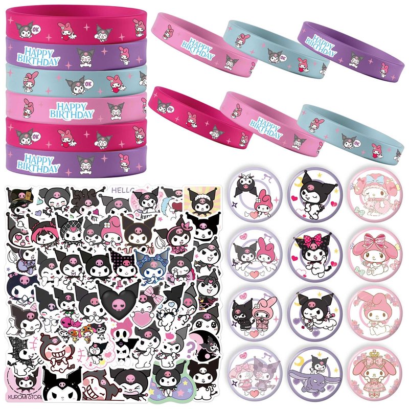 Kawaii Birthday Party Decorations, Kawaii Birthday Party Supplies Include 12 Bracelets, 12 Button Pins, 50 Stickers, Kawaii Party Favors