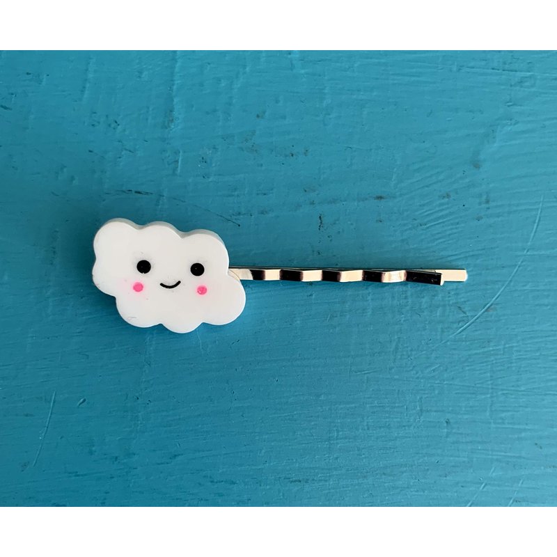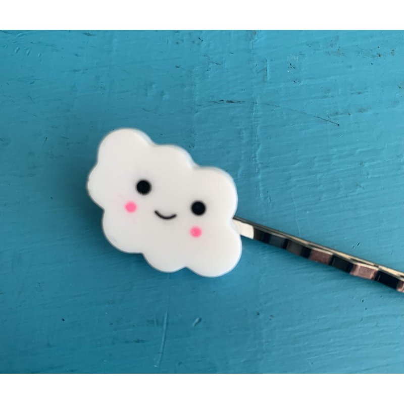 Kawaii Cloud Dollhouse Miniature Bobby Pin Hair Barrette - Smiling Cloud Jewelry - Gift for Her - Blushing Cloud - Rainbow Jewelry - Cute
