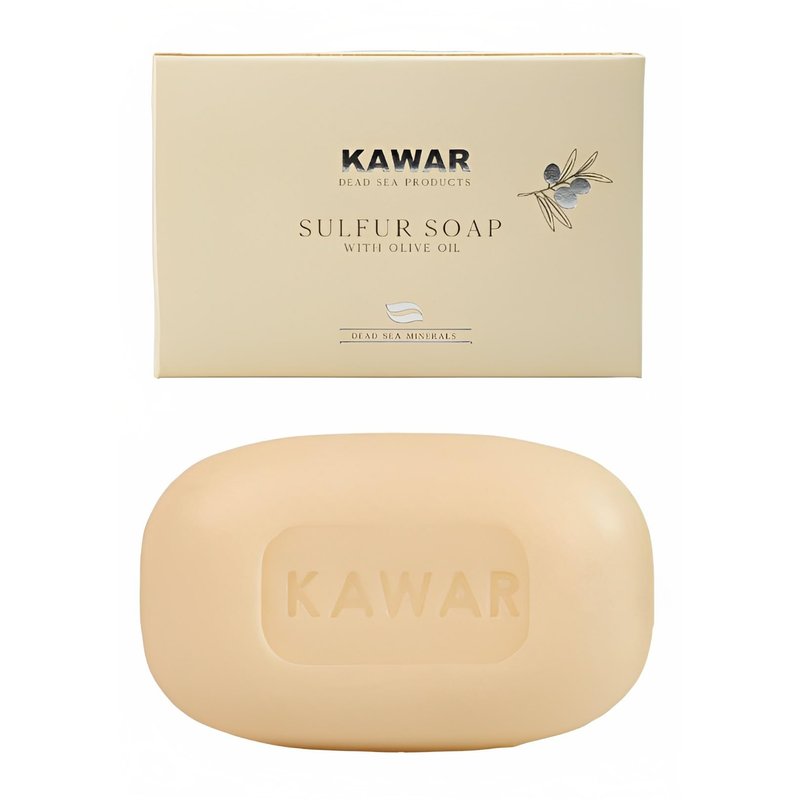 Kawar Dead Sea Sulfur Soap with Olive Oil is a specially formulated, skin-friendly choice. This soap integrates sulfur, Dead Sea minerals, and olive oil, offering benefits such as skin cleansing and oil control. It's thoughtfully crafted to support skin health, making it a beneficial addition to the skincare routines of those dealing with various skin conditions. The soap gently unclogs pores, balances skin oiliness, while nourishing your skin. Free from fragrance, GMOs, artificial colors, alcohol, and parabens, we ensure our products are cruelty-free. The ingredients we use provide deep hydration, antioxidant benefits, and support healthy cell turnover. Kawar Dead Sea Products, recognized for superior quality and nature-influenced formulations, offers an extensive range of skincare, beauty, and wellness products for an unparalleled skincare experience.
