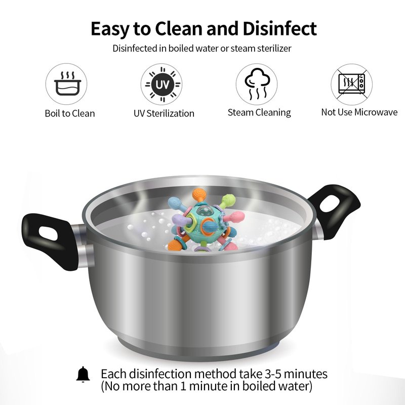 - 【Ideal for Newborns & Infants】 With bright colors to attract and distract babies during teething, this educational baby toy makes a great present for travel, birthdays, Christmas, Easter, and more. Let your baby enjoy sensory exploration with this teething toy.