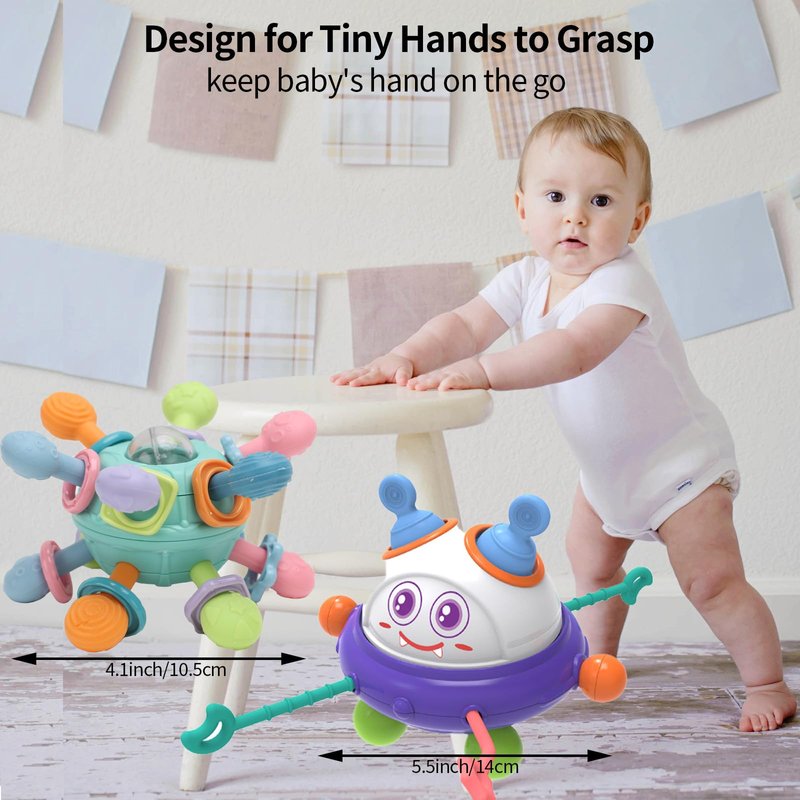 - 【2pcs Montessori Toys】 You will get 2 different montessori baby toys(baby teething toy and silicone bubble baby toy). Lightweight and portable, this toy is ideal for travel. It’s easy to hang from a diaper bag and is a lifesaver on long car or plane journeys, keeping your baby happily occupied.