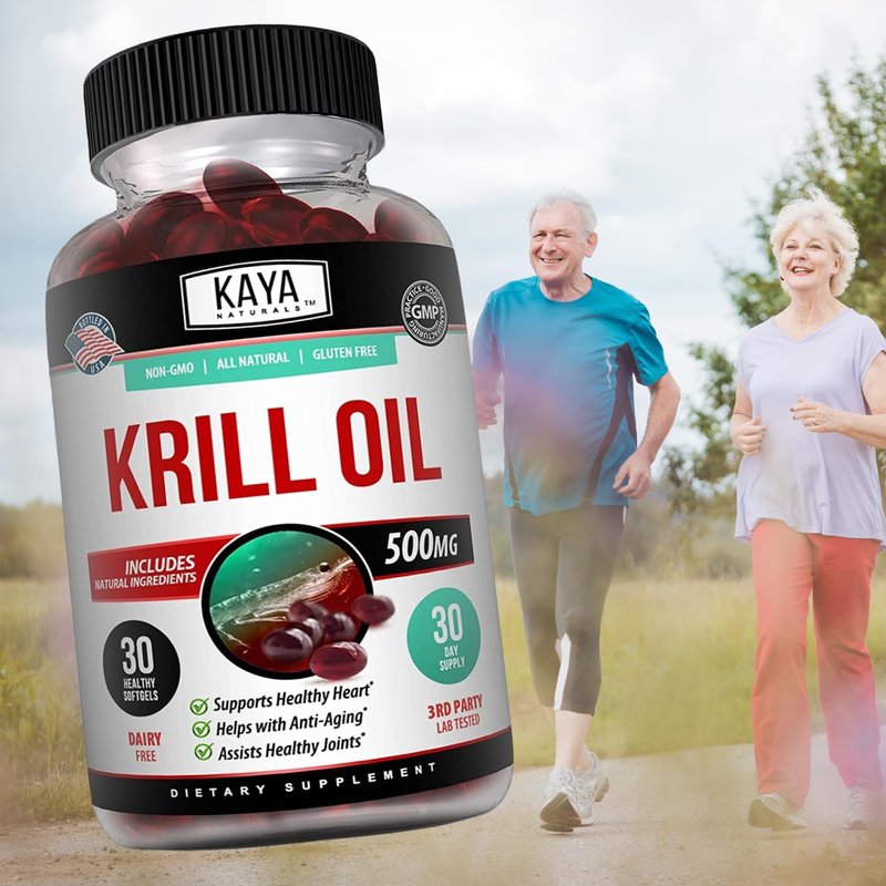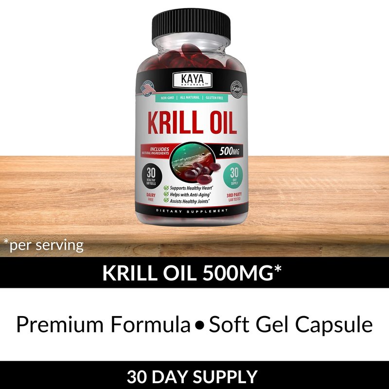 Kaya Naturals - Antarctic Krill Oil 500mg with Omega 3, EPA, DHA and Astaxanthin Supplement - Brain, Heart and Joint Health Vitamin - Heart Health Supplement - 30 Sofftgels