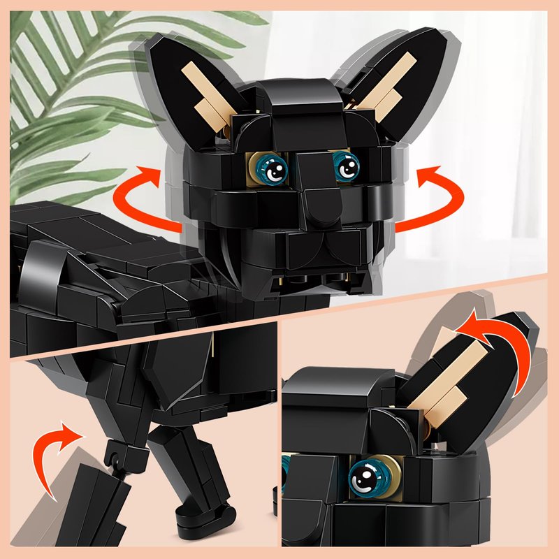 - Creative Construction - The black cat toy measures over 13.9 cm(5.5 in.) high,17.7 cm(7 in.) long and 6.7 cm(2.6 in.) wide,which has posable heads,ears,tail and can fold their legs and paws to sit or stretch out.Boys and girls 8-12 can pose the cat in different poses and will enjoy playing with this cat building set and can take this portable animal building toy wherever they go.