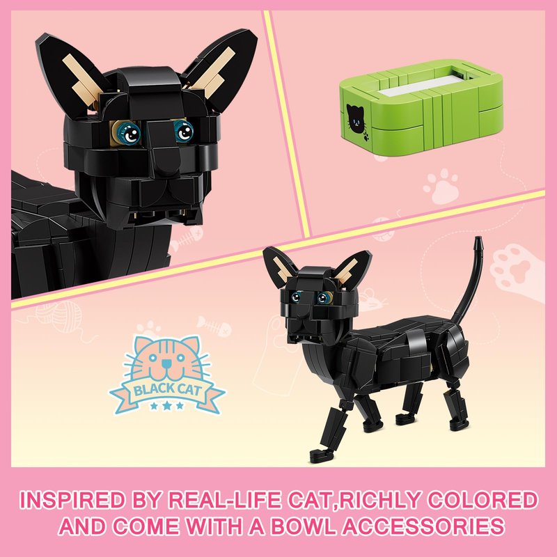 - Animal Toys for Kids 8-12 - The black cat building set is richly colored that improves children's interest in build and animals world.Help kids develop hand-eye coordination and fine motor skills.Packed with cat accessories such as a bowl to add extra fun,improves children's imagination and creativity.