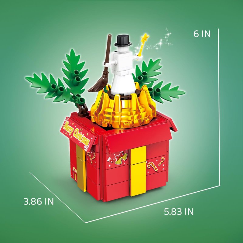- Grow Creativity :Kids can enjoy building with friends and family over the holidays.After builds,turning the crank,the snowman can be rotated on the gift box.Encourage kids to get creative with this snowman toys.