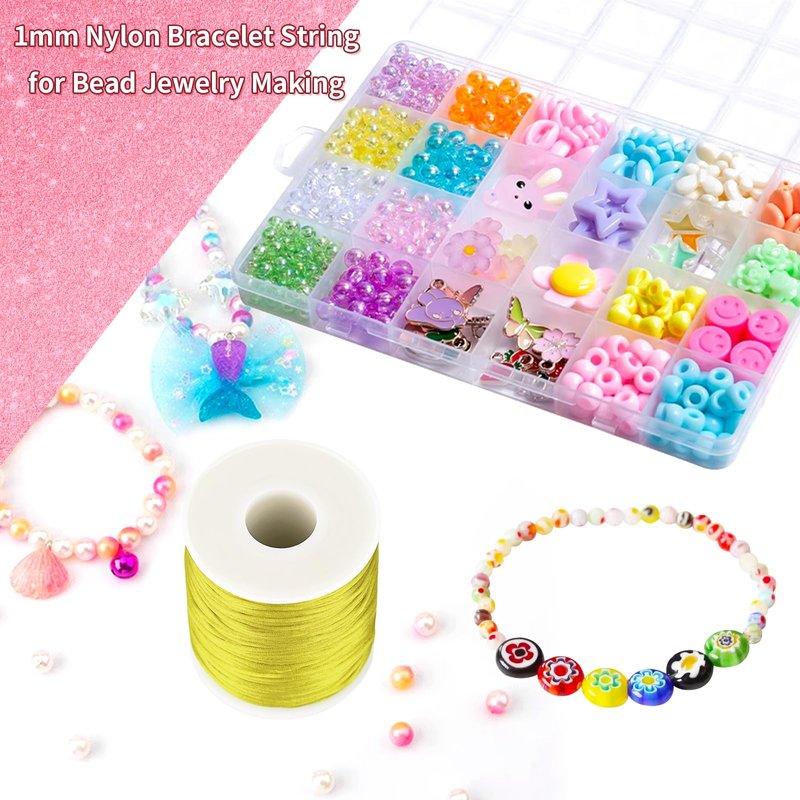 - Sufficient Length of the Nylon Cord - Kblick's gold nylon string for bracelet making is 1mm in diameter and 100 yards in length. This gold twine string can be freely cut to the desired length.