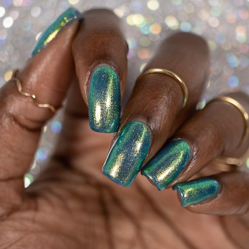 Jellybeans used to be a holiday-only treat, but not anymore. With gourmet flavors like margarita, blueberry, buttered popcorn, and even grass if you are so inclined, these tiny treats are now enjoyed year-round. Mixing flavors might be the best part; you can make yourself a blueberry muffin mix, or berry lemonade just by combining a couple of those tiny beans. Cool Beans nail polish is a nod to those colorful candies. A blueberry-colored base is loaded with a striking shifty shimmer. Boasting a strong green flash, different lighting and angles bring out teal, gold, blue, and peach. With a slightly larger shimmer, this shade offers a subtle sparkle that enhances the jewel tones of the polish. Two coats offer full coverage for most nail lengths. **All photos are from the same batch, but lighting, skin tones, and cameras may affect the brightness and tone. ** Type: Shimmer Base: 5-Free Glitter Load: Light Glitter Size: Micro Recommended Coats: 2 Coats Notes: This is not a quick-dry polish, we recommend following up with a coat of quick-dry top coat, like Clearly on Top.