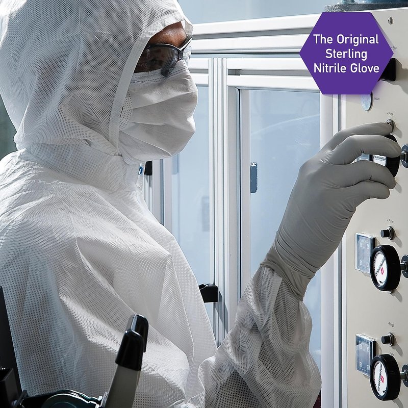 For a medical-grade balance between sensitivity and protection in a latex-free glove, nitrile synthetic rubber is hard to beat. Textured fingertips provide sure grip. Excellent for delicate work. Superior strength for extended use. 9 1/2-inch-long ambidextrous design.