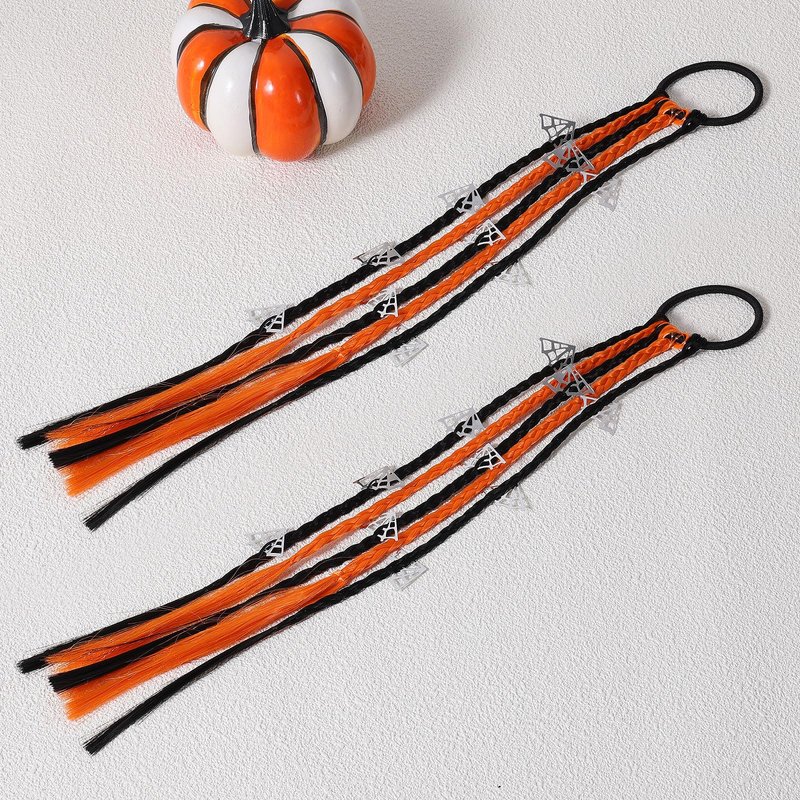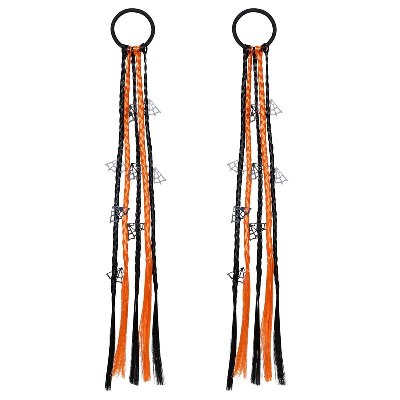 2pack Halloween Hair Braids Ties Hair Extensions with Rubber Bands,Ponytail Ribbon Hair Streamer Elastic Ribbon Hair Piece Headwrap Synthetic Wigs for Women Girls October Hallows' Eve Cosplay Costume Party Dress up Outfits Decoration Accessories Birthday Gift Set Orange Black-spider