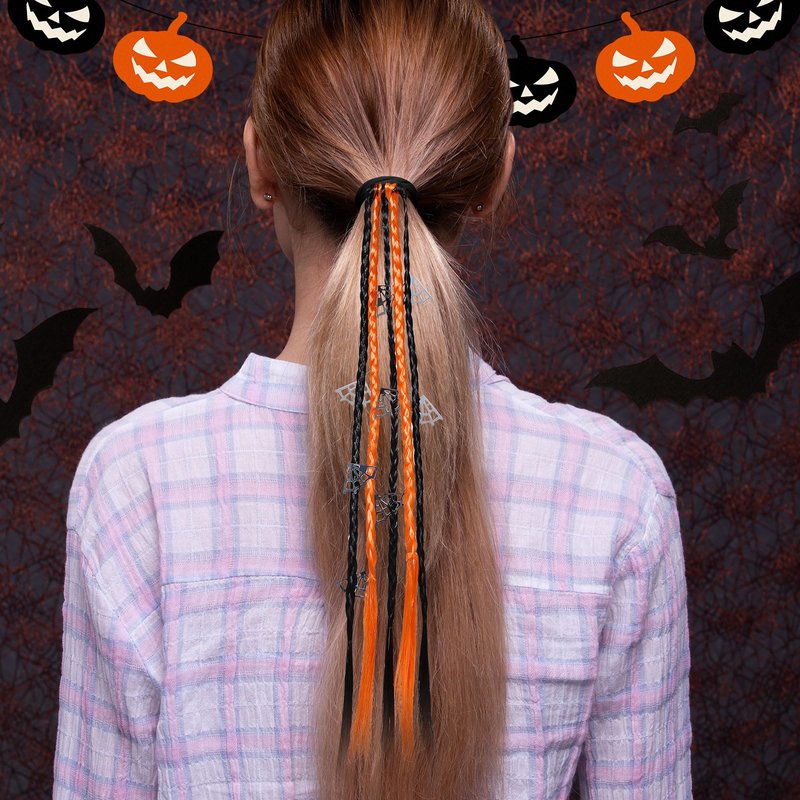 - Prime Quality Halloween Ponytail Hair Ties- Add some flair to your pony tail with sparkly bright black and orange spiderweb decor ponytail holder streamer hair tie! Each pony is well handmade of strong elastic rubber hair band,synthetic braid hair ties, durable and comfortable,makes a great Víspera de Todos los Santos party favors! approx,15.7ines.